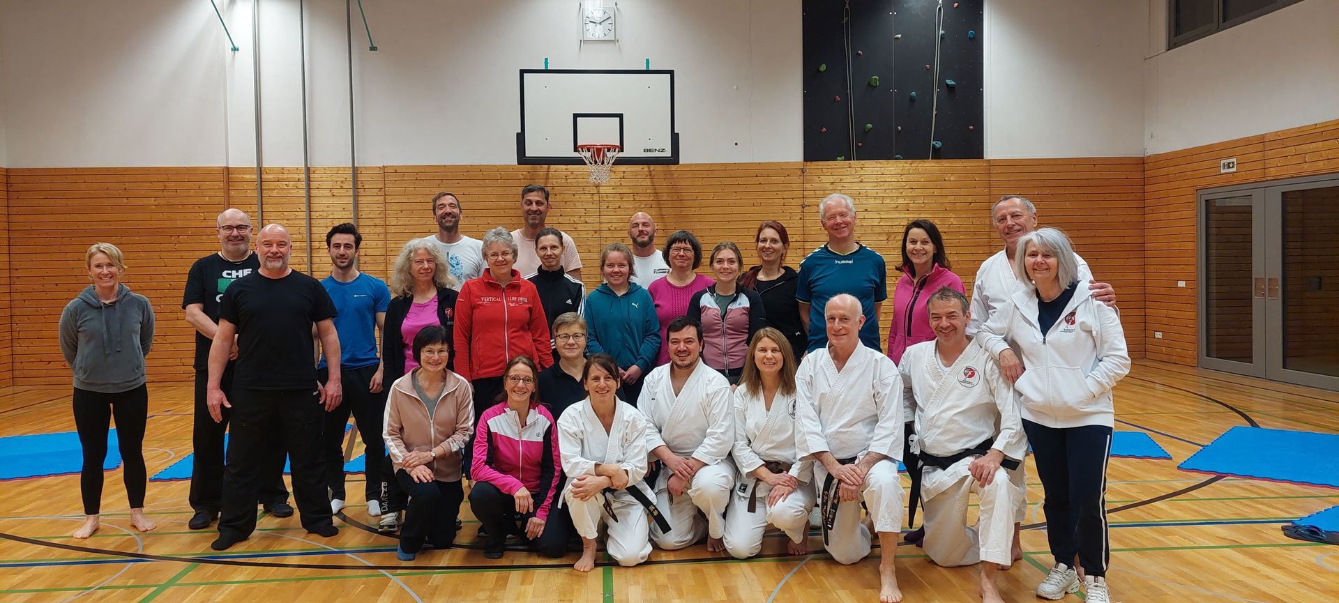Begleitet wurde die Theorie durch ständige Übungen für die Teilnehmer, die insgesamt ein völlig neues Bewusstsein für das Atmen und insbesondere auch für die Umsetzung in unser Karate entwickeln konnten. Erstaunen lies, zu welchen Leistungen der Mensch fähig ist, wenn das Atmen zielgerichtet geübt wird. Bewusstes Atmen, so die Essenz dieses Abends, führt zu innerer Ausgeglichenheit und Stressabbau; Faktoren, die nicht nur in unserem Sport sondern auch im Alltag allergrößte Bedeutung haben. Für die Trainer der Budoschule war dieser Abend Motivation, dem Thema „Atmung“ in den Trainingseinheiten wieder mehr Raum zu geben.