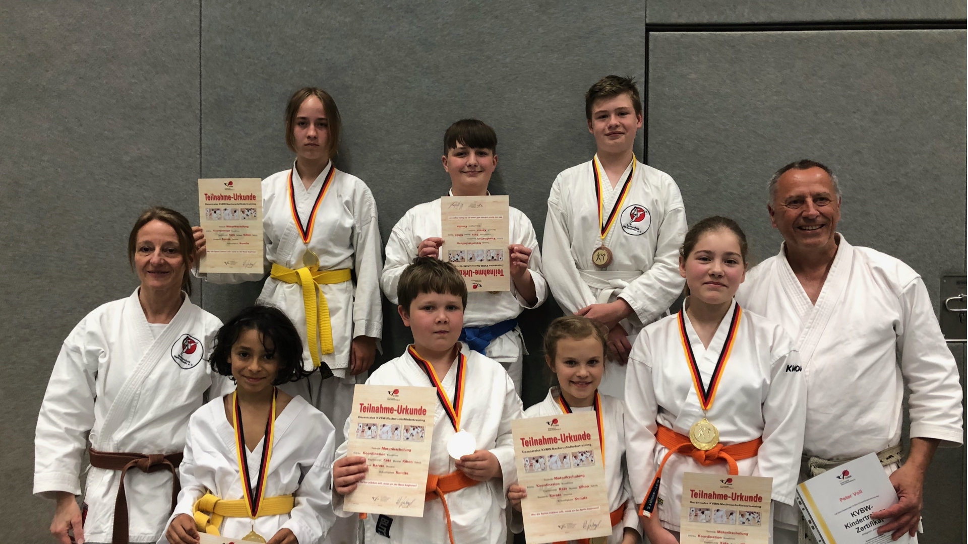 Begleitet von Ihren Trainern Silke und Peter nahmen 7 Kinder der Budoschule am Samstag, 30 April 2022, an einem Kinderfödertraining in Lahr teil. Dieses war vom KVBW ausgeschrieben worden und umfasste unter Leitung des KVBW-Jugendreferenten Helmut Spitznagel die Themen „Kognition- Koordination – Kondition –Karate“. Nach einem über 5-stündigen Trainingstag erhielten die Kinder ihre Teilnahmeurkunde und eine Medaille. Die beiden Trainer wurden für ihre aktive Teilnahme mit dem „KVBW-Kindertrainer-Zertifikat“ ausgezeichnet.